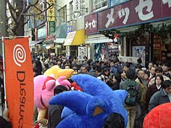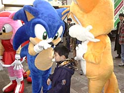 | On December 23, the release date of Sonic Adventure, producer Yuji Naka as well as Sonic and his friends came to support the game at retailers in Shinjuku, Ikebukuro, and Akihabara. Thanks to all the stores, it was a great success! He was the first one to get to Shinjuku, and he lined up from five in the morning. | |